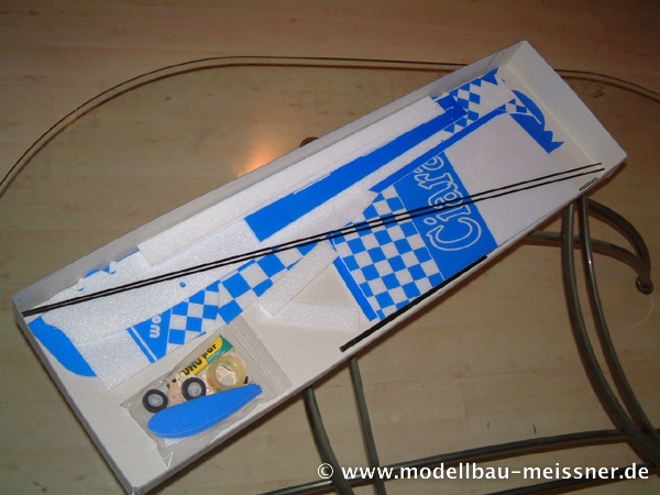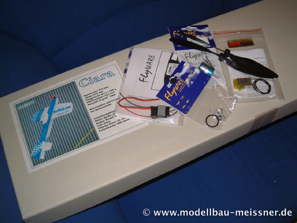 Auf dem Elektoflugmeeting 2005 in Asbach gab’s einen Haufen zu sehen und zu kaufen…und irgendwie wollte ich dann doch nicht nur mit einer Tüte Kleinzeugs nach Hause. Nachdem mein lieber Fliegerkollege Manuel schon einige Zeit den Ciara fliegt, hab‘ ich dann schnellentschlossen auch zugeschlagen.